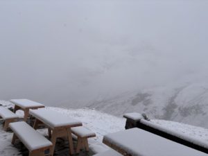 Oberhalb der Hütte liegt nun schon etwas mehr Schnee, da es dort gestern bereits am Nachmittag angefangen hat zu schneien. Morgen soll es dann wieder Niederschlag geben, wobei es nicht ganz klar ist wo die Schneefallgrenze liegt und es zuerst noch regnet… Über die Fuorcla d’Agnel wird es aber voraussichtlich am Wochenende auch etwas Schnee haben.