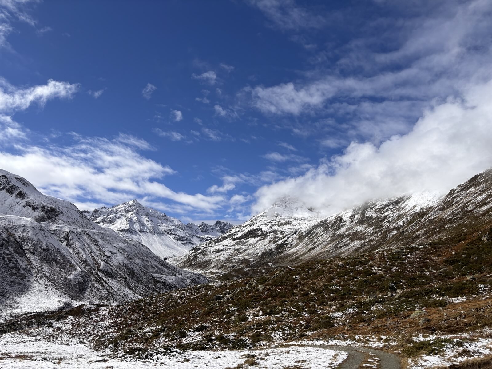 Der Schnee ist heute Nachmittag ratz fatz geschmolzen. Von Spinas aus ist es wieder schneefrei und auch an den Pässen hat es nicht mehr viel.