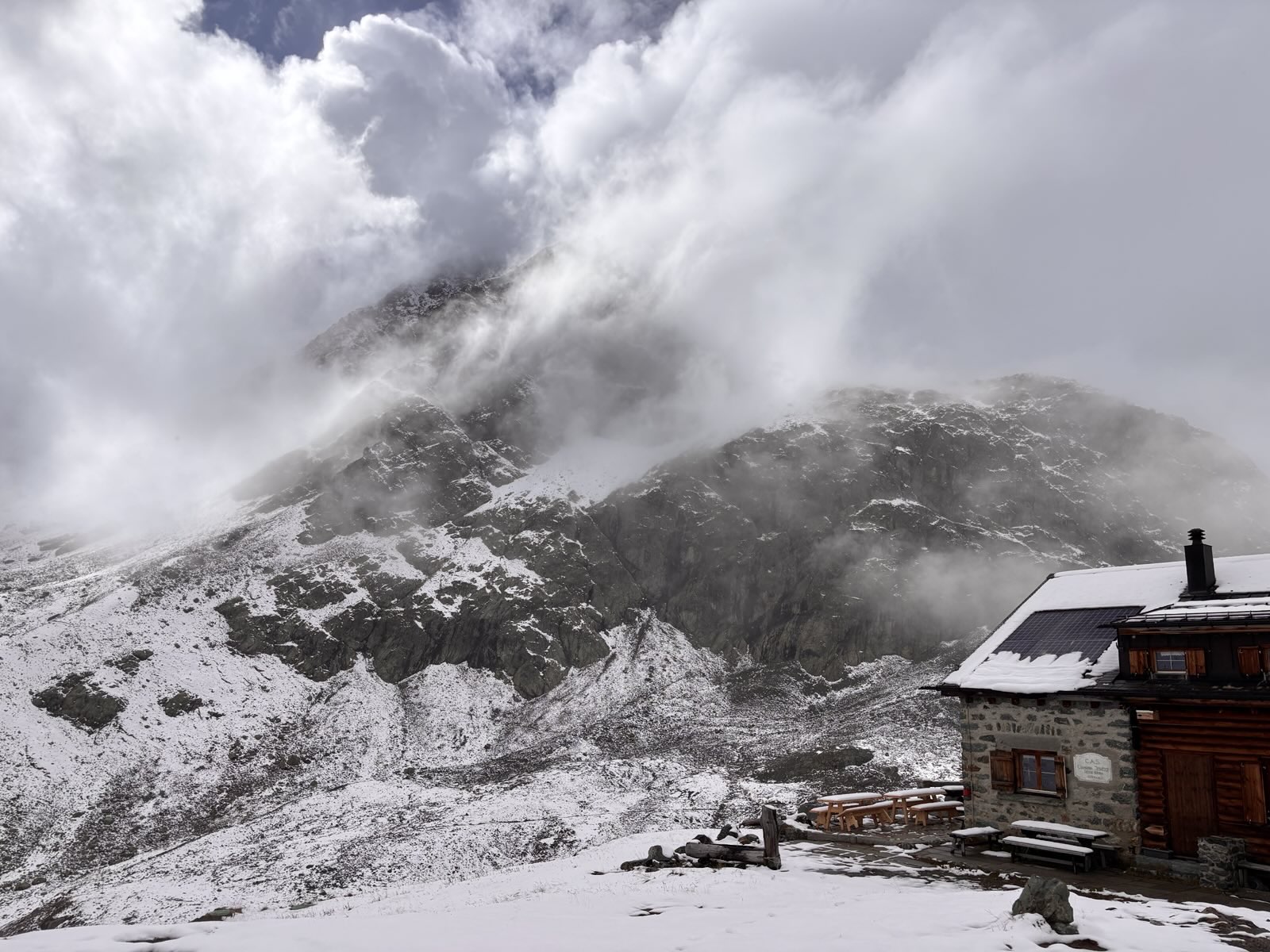 Es hat gestern den ganzen Tag geregnet und über Nacht bei der Hütte ca. 10-15 cm geschneit. Der Zustieg von Spinas ist nun auch schneebedeckt, dies wird aber schnell wieder schmelzen und ist mit guten Wanderschuhen gut machbar in den nächsten Tagen.
